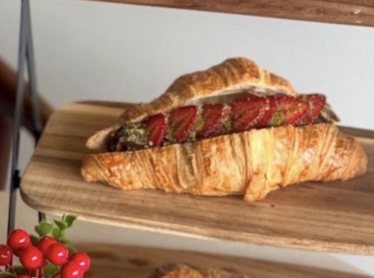 Klasik kruvasan pastacı kreması çilek muz antep fıstık toz